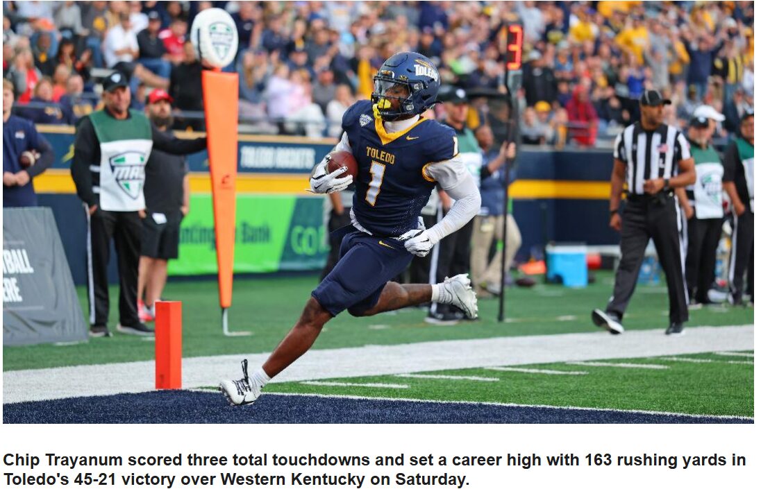 Read MoreLast-Minute Score Drops Rockets at Western Michigan, 14-13 Toledo’s defense had six tackles for loss and three takeaways,…