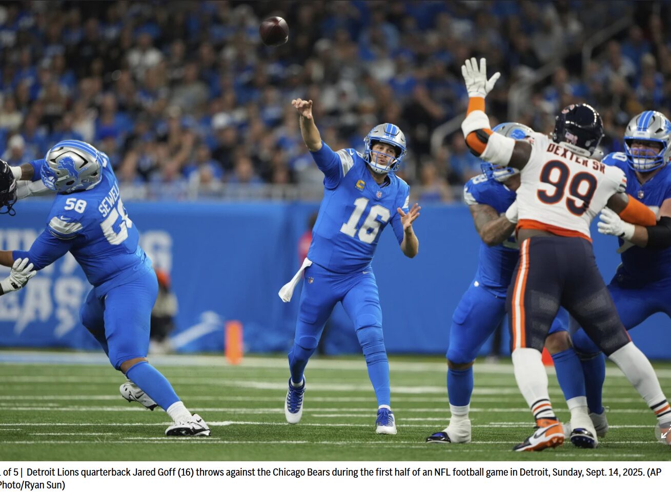 Read MoreBy LARRY LAGE Updated 4:32 PM EDT, September 14, 2025Share DETROIT (AP) — Jared Goff threw for 334…